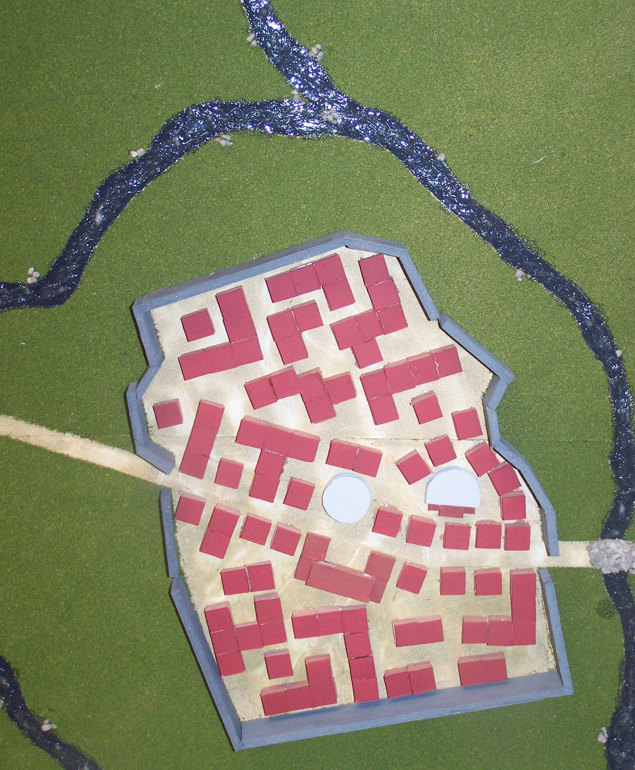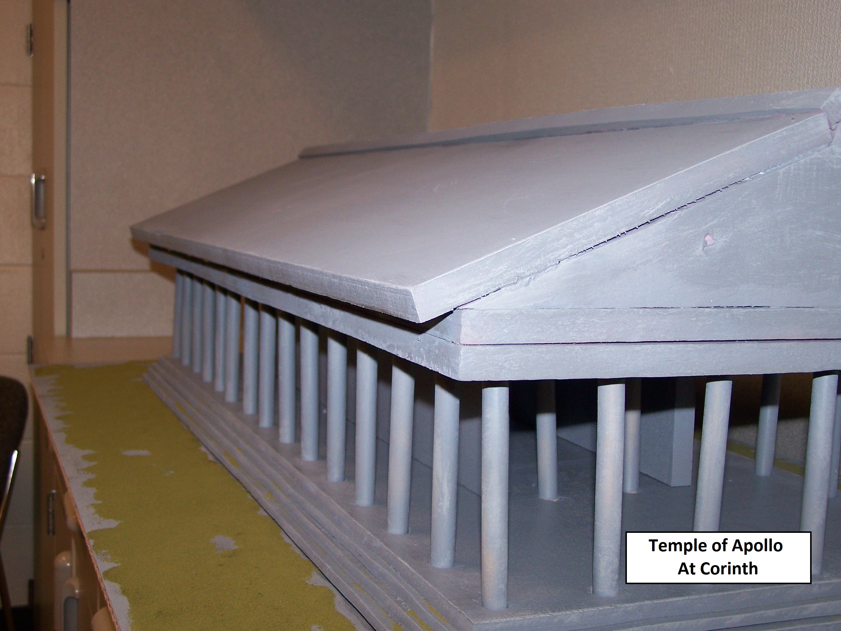 Jason Magnusen created a model of Philippi, highlighting the Roman Cardo and public buildings. We also had a clay-model of the Ephesian theater (Katlynn, Rachel and Kimmy) and a diorama of Ephesian culture from Jessica Daughtery. Tony Alexander did a very nice job creating an model of the harbor in Caesarea in Blender. I wish he had the time to do the whole city, but the section he did was very well done. Cameron Myers and Bryce Stanhope teamed up to create a model of the Temple to Apollo at Corinth (below). This is a pretty cool model, although I am not sure what I am going to do with it now. I am thinking of using Lego-People and creating a video of the Riot at Ephesus, but then again, maybe not.